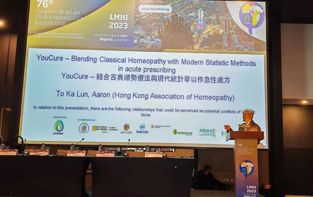 第二场是有关 Clificol 的科研。全球 197 个顺势疗法专业团体都一致同意:Clificol 顺势疗法案例注册平台很重要。目前 35 个国家的合作已经创造顺势疗法的历史,而且首次以统计学分析证实:新冠病人可按症状分类为不同的 pattern,而 pattern 跟顺势疗法疗剂图象相对应的事实。同一个病的患者应该按其 pattern 作个人化处理。有了 Clificol,顺势疗法的处方由过去的意见为主,渐渐走向以数据为主,在实证医学的道路上走得更远。一下台就受邀到法国再演说 Clificol 。